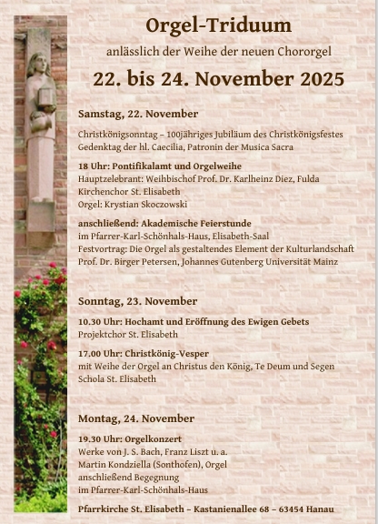 Beichtgelegenheit jeden Samstag ab 17.00 Uhr (vor der Eucharistiefeier) in der St. Elisabethkirche. Beichtgespräche und Seelsorgsgespräche auch nach Vereinbarung.