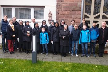 Eins der Fotos zeigt Hanauer Jugendliche mit den barmherzigen Schwestern vom Heiligen Vinzenz die eigens mit ihrer Generaloberin Sr. Birgit Bohn aus Fulda zum Gebet gekommen waren.