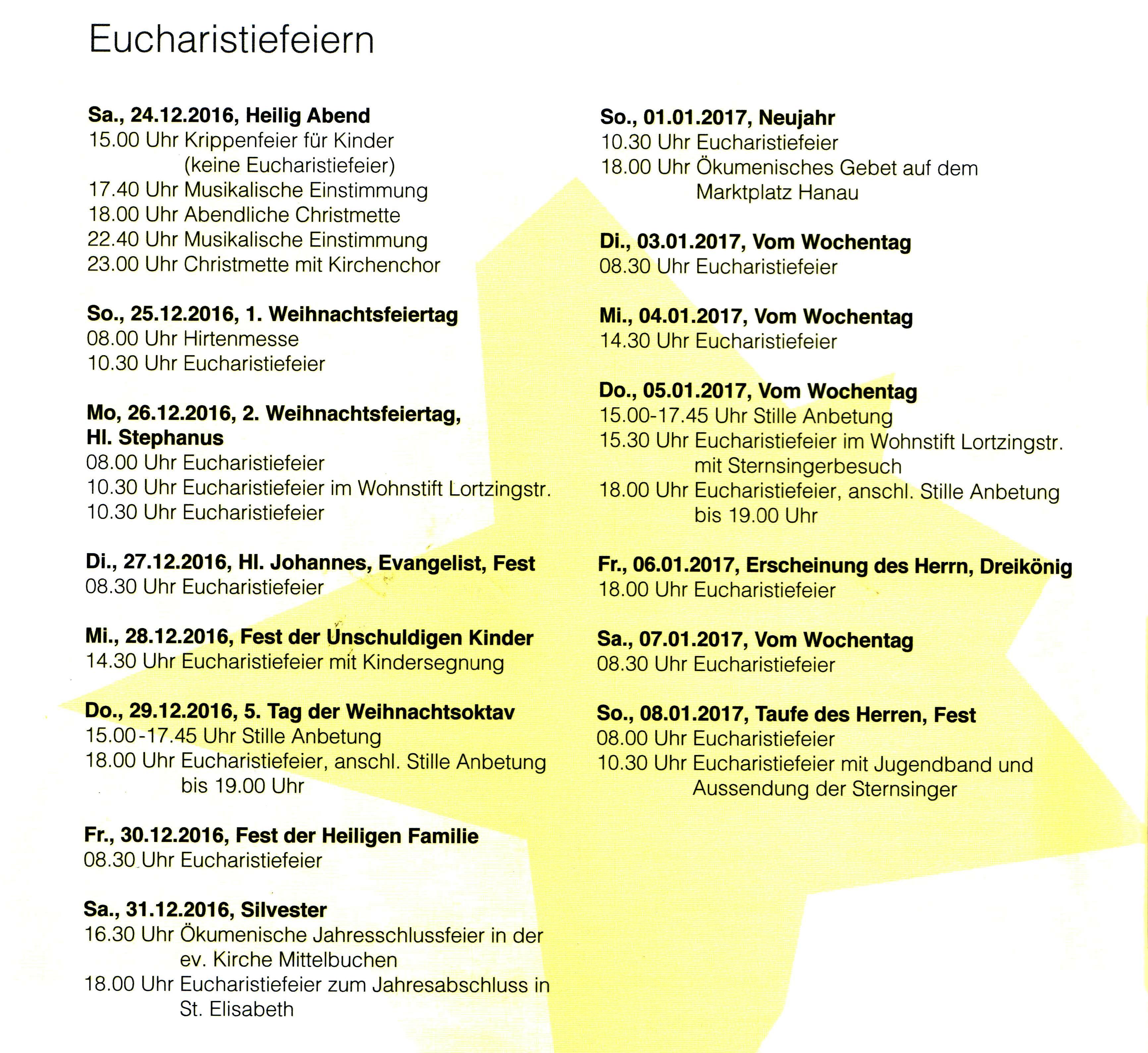 Beichtgelegenheit jeden Samstag ab 17.00 Uhr (vor der Eucharistiefeier) in der St. Elisabethkirche. Beichtgespräche und Seelsorgsgespräche auch nach Vereinbarung.