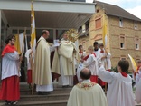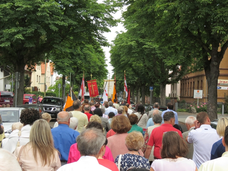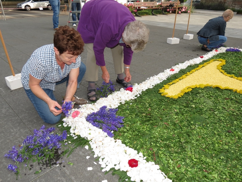 Unvergesslich bleibt der riesige Blumenteppich mit dem Bild unserer Monstranz auf unserem neuen Kirchplatz – zur Ehre des Allerheiligsten und zur Freude aller Teilnehmer. Allen, besonders denen, die am Blumenteppich mitgearbeitet haben – den Blumenfrauen und -männern - besonders dem Ehepaar Klemens und Ingrid Pillmann - ein ganz großes Dankeschön und Vergelt’s Gott. Ein Tag zur Ehre Gottes, der tief in die Geschichte unserer Pfarrei und unseres Pastoralverbundes eingehen wird.