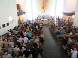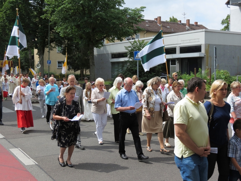Das haben wir am Fronleichnamstag bei uns erlebt. Unter großer Beteiligung zogen wir nach der Eucharistiefeier im Amphitheater durch Schloßpark und Kastanienallee mit vier Stationen mit Evangelien, Bitten, Dank und Segen zu unserer St. Elisabeth Kirche. Zum 50. Geburtstag wirklich ein besonderes Geschenk. Jesus Christus ist da und bleibt da! Viele haben zum Gelingen beigetragen: Die Küster und Messdiener, die beiden Chöre von St. Elisabeth und Mariae Namen mit ihren Kantoren und Chorleitern, die Bläsergruppe.
